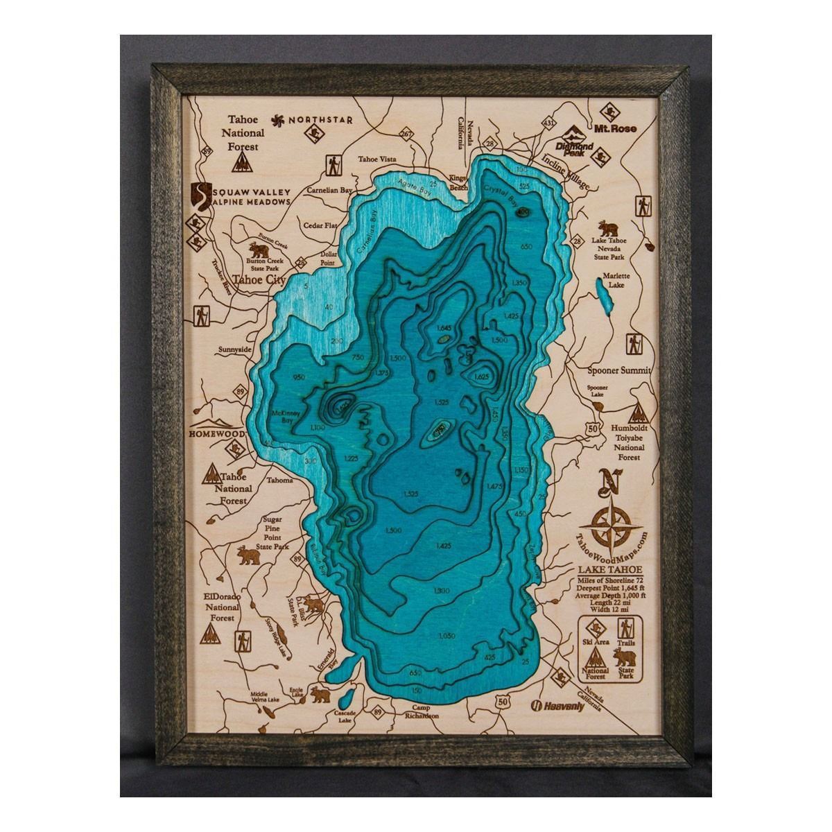 Tahoe Wood Map 17"H x 13"W x 2"D